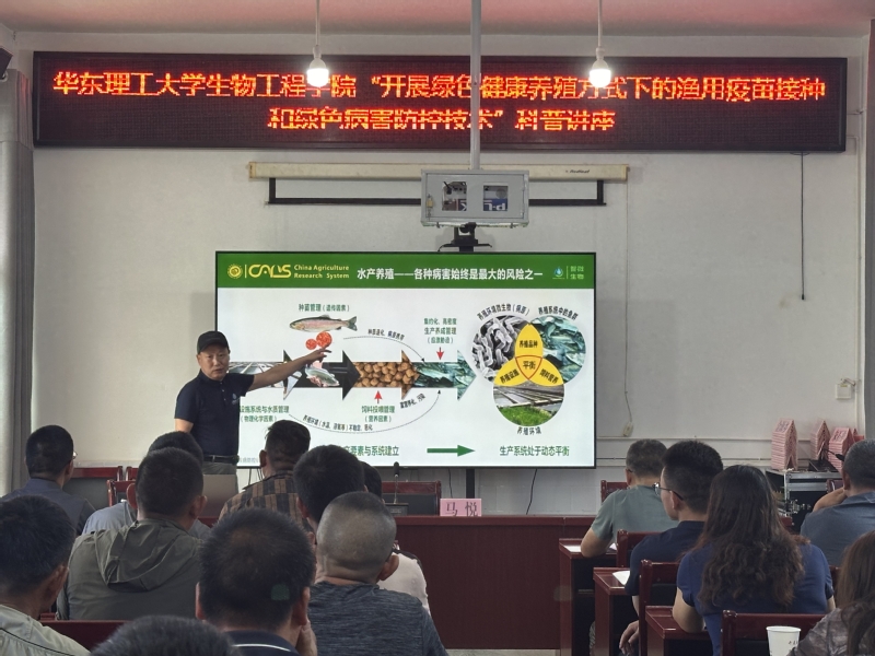 7月8日至7月11日,生工学院马悦副教授带队赴寻甸县开展科技帮扶,与寻甸县农业农村局及企业座谈交流,调研以虹鳟鱼、鲟鱼为代表的冷水鱼养殖业在生产培育和健康管理方面遇到的技术瓶颈与困难。马悦以渔用疫苗接种和绿色病害防控技术为题,为100余位养殖户作讲座培训。此外,生工学院还在寻甸县成立科研教学实践基地,为淡水鱼养殖和健康管理提供全周期专业支持,受到当地养殖户欢迎。